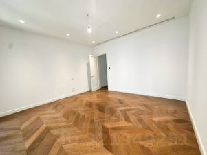 Отделка выполнена из качественных дорогостоящих материалов: мрамор, паркетные полы из дерева твердых пород. Ванные комнаты и кухня оборудованы премиальной бытовой техникой и сантехникой. Квартира имеет прямоугольную форму. Высота потолков - 3,3 м.