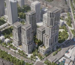 Квартал "Издание" пронизан атмосферой локации, её энергетикой. Она воплощена в общей композиции, чистоте её форм, в графичных и динамичных силуэтных линиях. Дом на едином стилобате с корпусами от 15 до 43 этажеи поддерживают идею монументальности и одновременной лёгкости, но при этом у каждого из них сформировался свой характер. "Игра" с разными высотами, текстурой и формой фасадов позволила запустить в квартиры и дворы больше света, сделать пространства между домами проницаемыми и воздушными. Застройщик — компания Брусника.