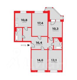 Комнаты: 17,4 м²; 14,8 м²; 12,2 м²; 10,3 м². Все комнаты изолированные.