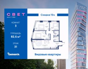 Жилой комплекс "СВЕТ" — воплощение современного комфорта и архитектурного изящества, созданное девелопером Dominanta в сотрудничестве с известным бюро СПИЧ. Комплекс представляет собой элегантное 52-этажное здание, расположенное в Западном Дегунино, на Дмитровском шоссе, 83А. Удачное местоположение обеспечивает удобство для жителей: станция метро "Селигерская" находится в пешей доступности, что делает путь в центр Москвы быстрым и комфортным.