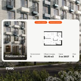 Продаётся 1-комн. квартира площадью 36,85 кв.м на 5 этаже 9 этажного дома (Корпус 4.1, Секция 2) проекта ПИК Ильинские луга. Светлый просторный подъезд на уровне земли, функциональная планировка, большие окна, c отделкой.