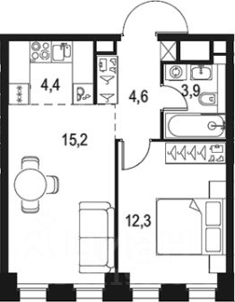 ЖК Level Селигерская. Евро 2 комнатная квартира 40,4 м без отделки. Сдача дома 4 квартал 2026 г. Корпус 3. Очень функциональное планировочное решение для жизни, кухня гостиная 19,6 м, спальная комната 12,3 м, ванная комната 3,9 м, просторная прихожая 4,6 м. Комфортный 7 этаж. В квартире 4 окна, вид во двор, на Юго-Западную сторону. Высокие потолки. Закрытая территория двора. Подземный паркинг. Видеонаблюдение. Презентабельные лобби.