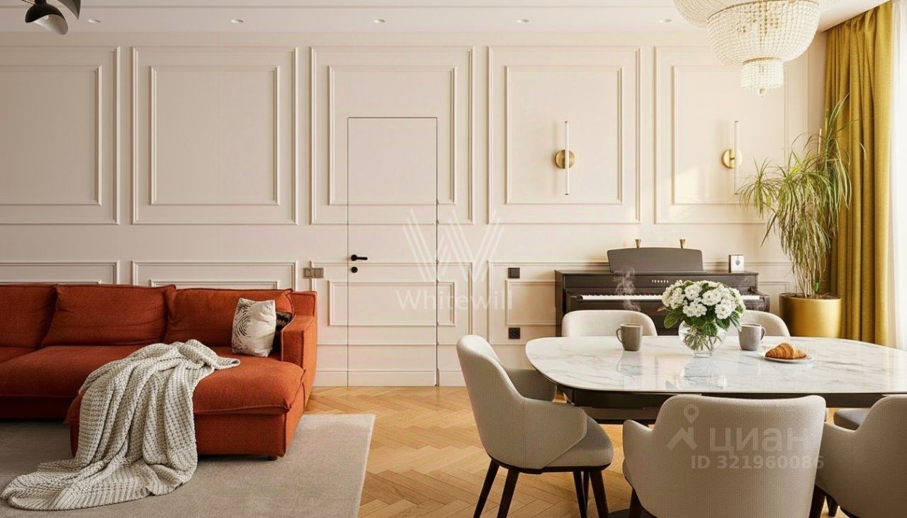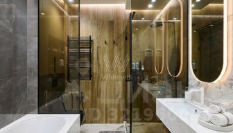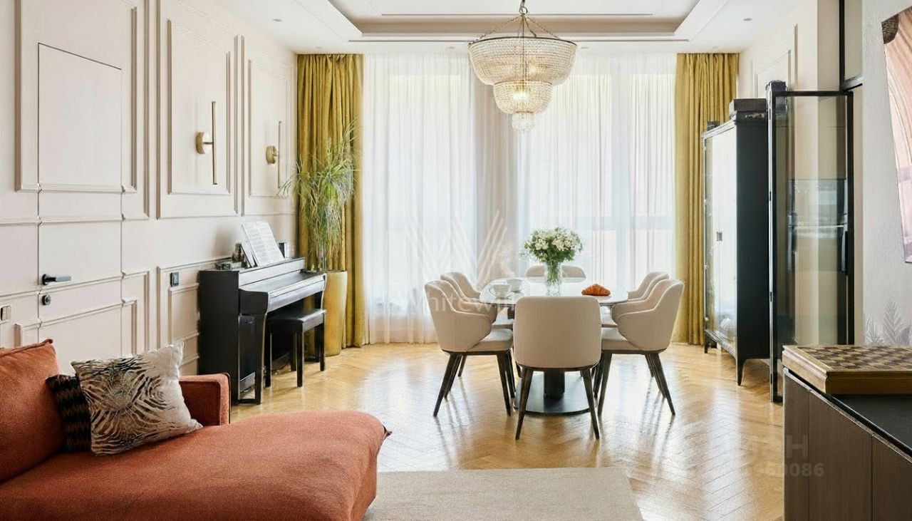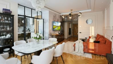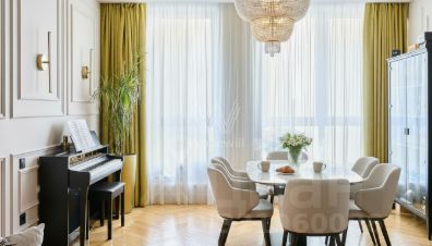 Просторная квартира с тремя спальнями общей площадью 156 м² в комплексе клубных домов премиум-класса Barrin House в Хамовниках. Светлый современный интерьер, высокие потолки, панорамные окна в пол.