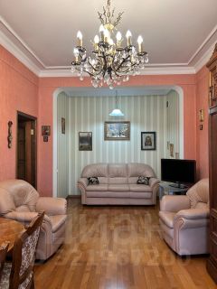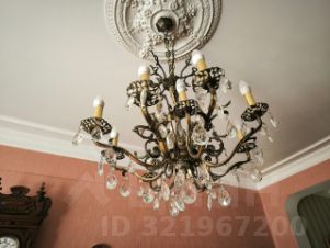 В гостиной ореховый шкаф-библиотека второй половины 19 века, обеденный ореховый стол со стульями с итальянской обивкой. В гостиной красивая бронзовая люстра. Дубовые двери в прекрасном состоянии.
