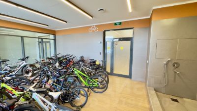 Дом оснащен двумя пассажирскими и одним грузовым лифтами, что обеспечивает удобное передвижение по этажам. На первом этаже оборудовано помещение под коляски и велосипеды, с душем для мытья колес и лап Вашего питомца после прогулки. Для автомобилистов предусмотрена наземная парковка с шлагбаумом. Дом находится в отличном состоянии, так как был построен совсем недавно.