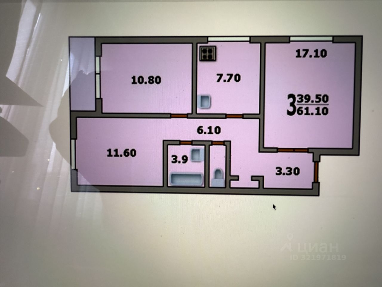 61,3 м²