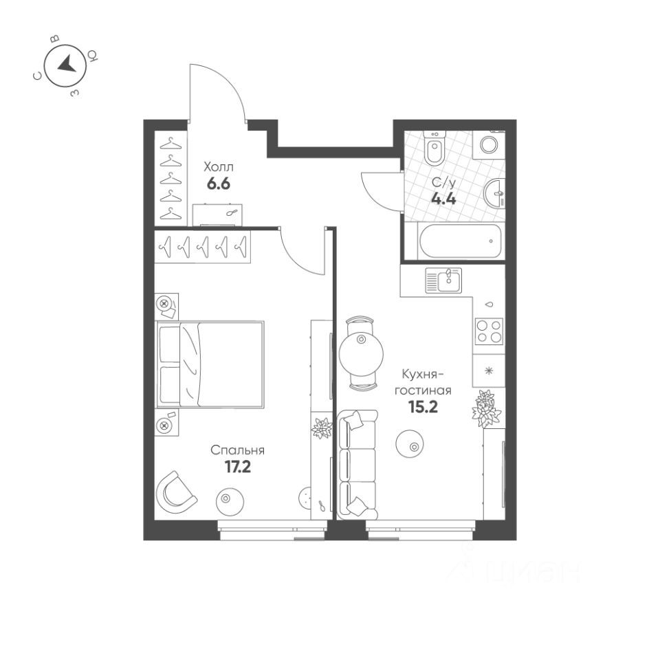 Продается 1-к квартира без отделки в ЖК "Shagal".