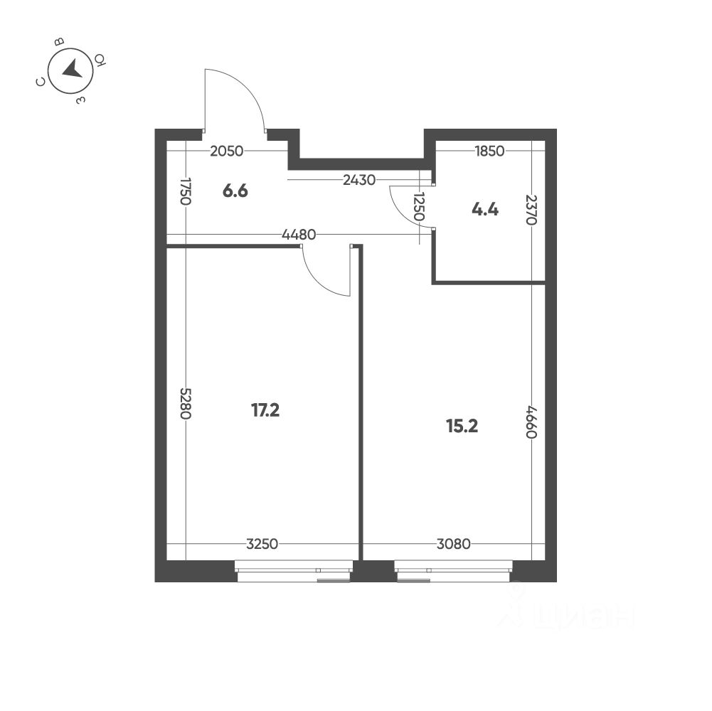 Общая площадь квартиры — 43.4 кв. м, этаж 3 из 8.