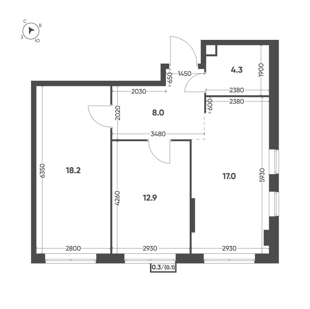 Продается 2-к квартира без отделки в ЖК "Sokolinn Park".