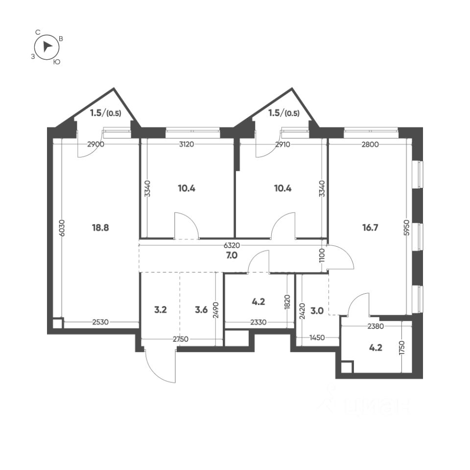 Общая площадь квартиры — 82.5 кв. м, этаж 4 из 21.