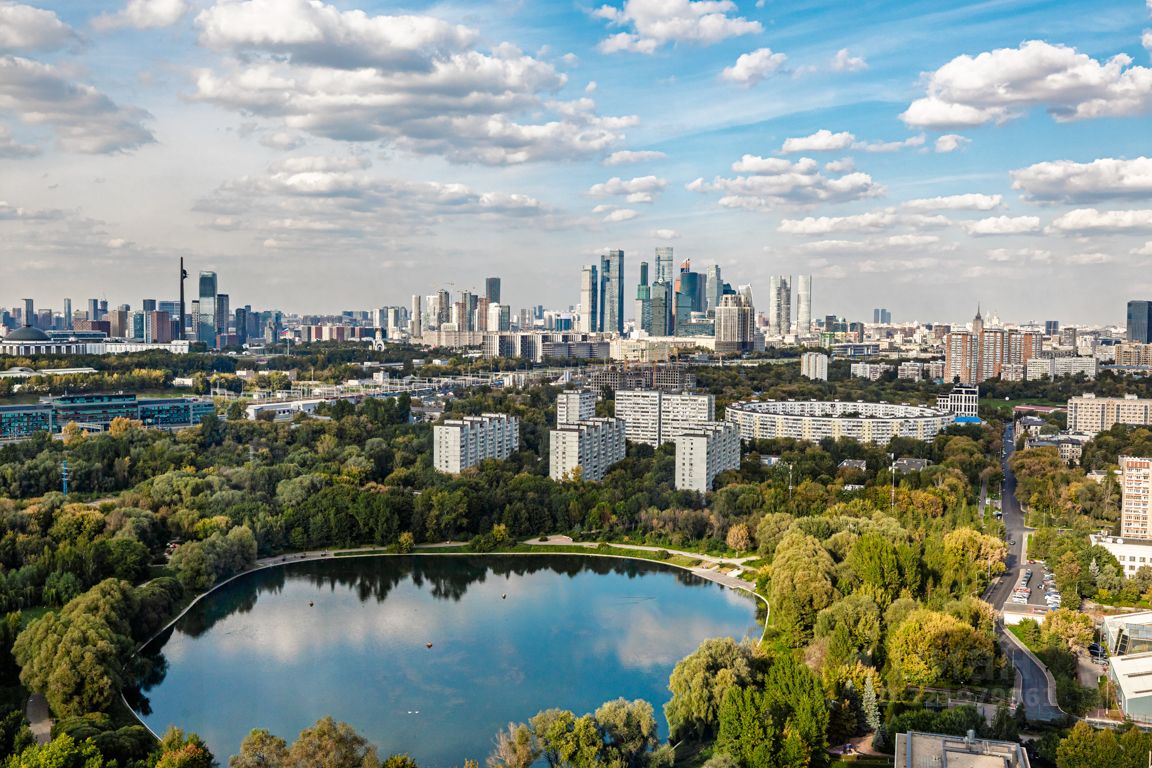 Из квартиры открывается красивый панорамный вид на Москва-Сити и пруд.