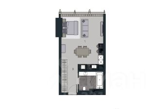 Площадь апартамента 50,7 кв.м., из которых площадь студии 38 метров, просторный санузел 7 кв.м. и холл 6 кв.м.
