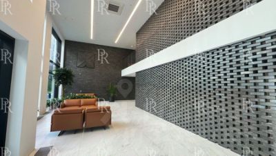 Квартира с дизайнерской отделкой и панорамными окнами открывает великолепные виды на город. Удобная планировка включает просторную гостиную с кухней, мастер-спальню с ванной, дополнительную спальню и хозяйственную зону с постирочной.