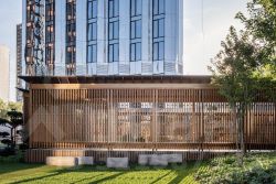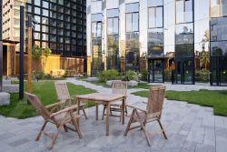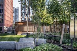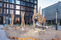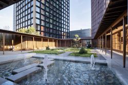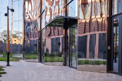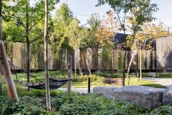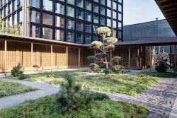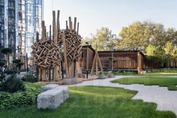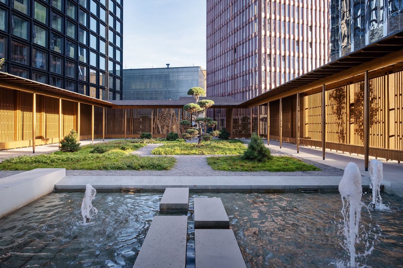 Территория комплекса представляет собой тщательно продуманный ландшафтный парк площадью 1,5 гектара, где 70% пространства отведено под зеленые насаждения. Над созданием этого уникального пространства работало известное нидерландское бюро WEST8.
