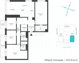 Возможная планировка: кухня-гостиная, 2 изолированные спальни со своими ванными комнатами, кабинет, спальня, гостевой санузел, 2 балкона, холл.
