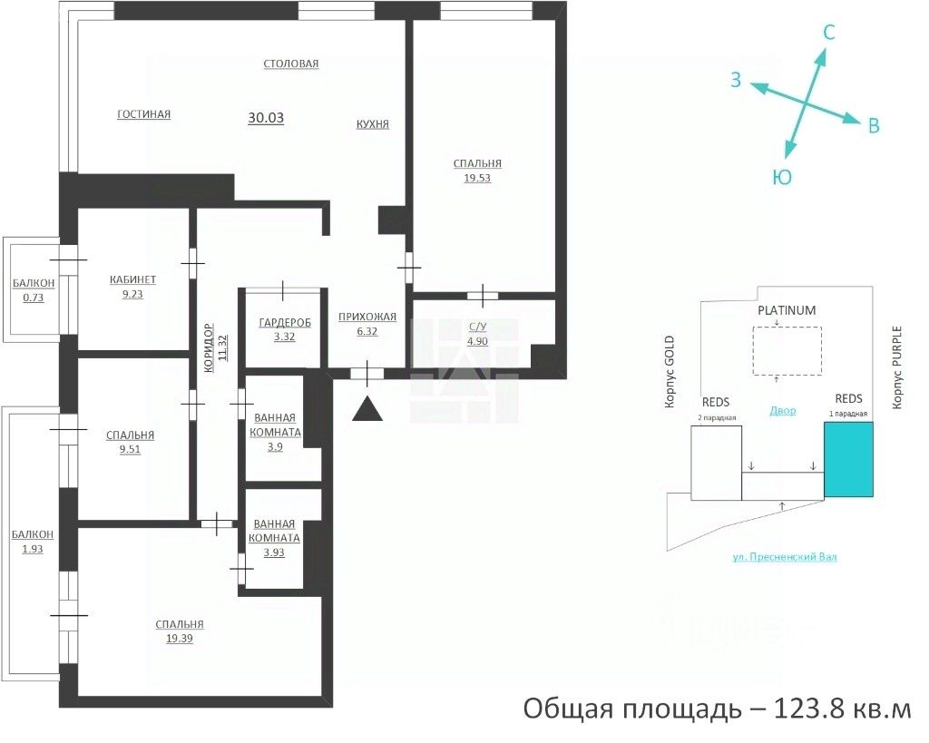 Лот: 9311. Вашему вниманию предлагается квартира общей площадью 123,8 кв.м. в комплексе премиум-класса Republic на Пресне.