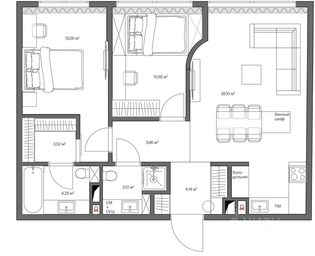 Мебель разработана по индивидуальному проекту, техника от ведущих производителей премиум сегмента.