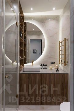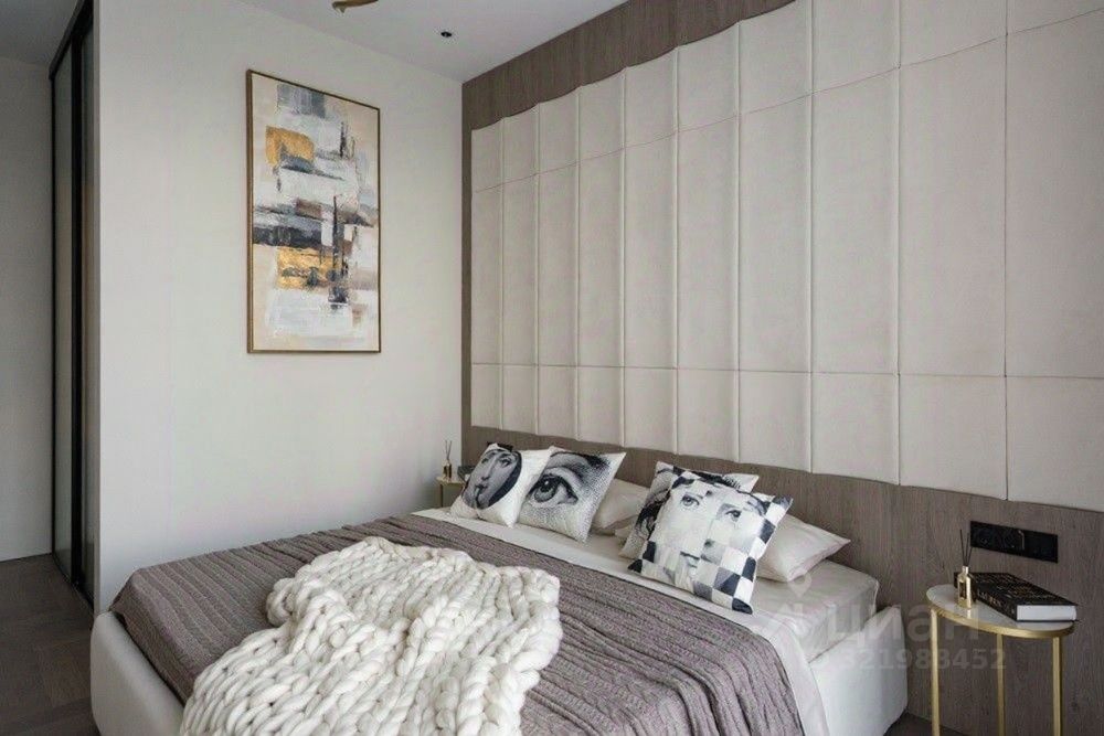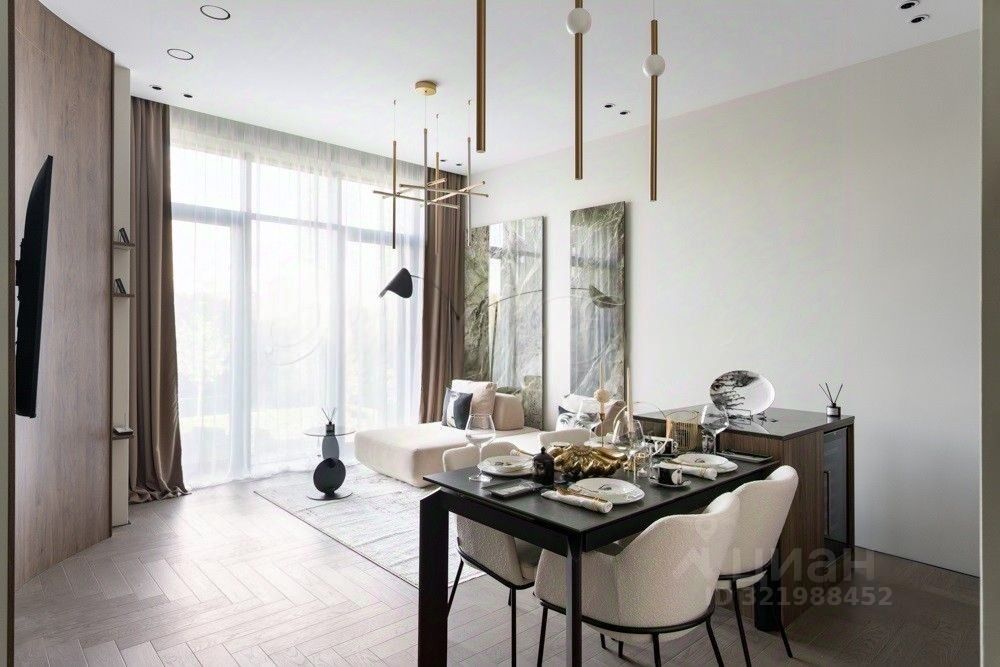 Есть встроенная гардеробная, постирочная, вместительные шкафы, стеновые панели из дерева, авторские декоративные панно и зеркала.