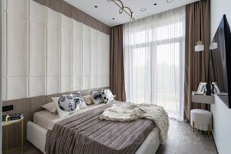 Квартира с новым ремонтом и современным дизайном в бежево-кофейных тонах.