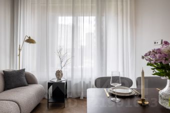 Великолепное предложение - в продаже стильная евро-двухкомнатная квартира с новым современным дизайнерским ремонтом в новом жилом комплексе бизнес-класса Alia, в 10 минутах ходьбы от метро Спартак. В доме кофейни, рестораны салоны красоты, фитнес студия.