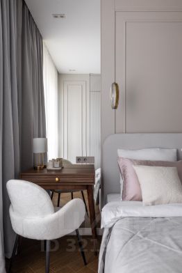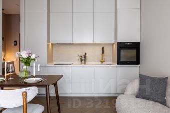 В квартире функциональная планировка, включающая в себя коридор с вместительной гардеробной, где предусмотрено место для стиральной и сушильной машин, просторную светлую комнату с большим встроенным шкафом, рабочим местом и шикарной кроватью с мягким изголовьем и подъемным механизмом 160 на 200. Кухня из эмали укомплектована хорошей техникой: посудомоечной машиной, холодильником, варочной панелью и электрическим духовым шкафом с встроенной СВЧ.