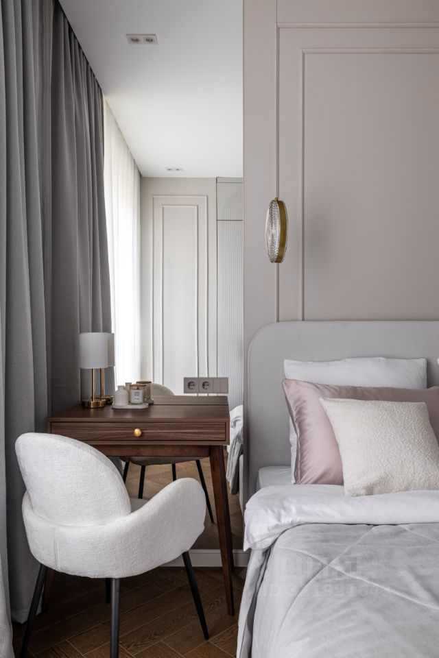 В интерьере использованы гармоничные пастельные оттенки, продуманы несколько сценариев освещения.