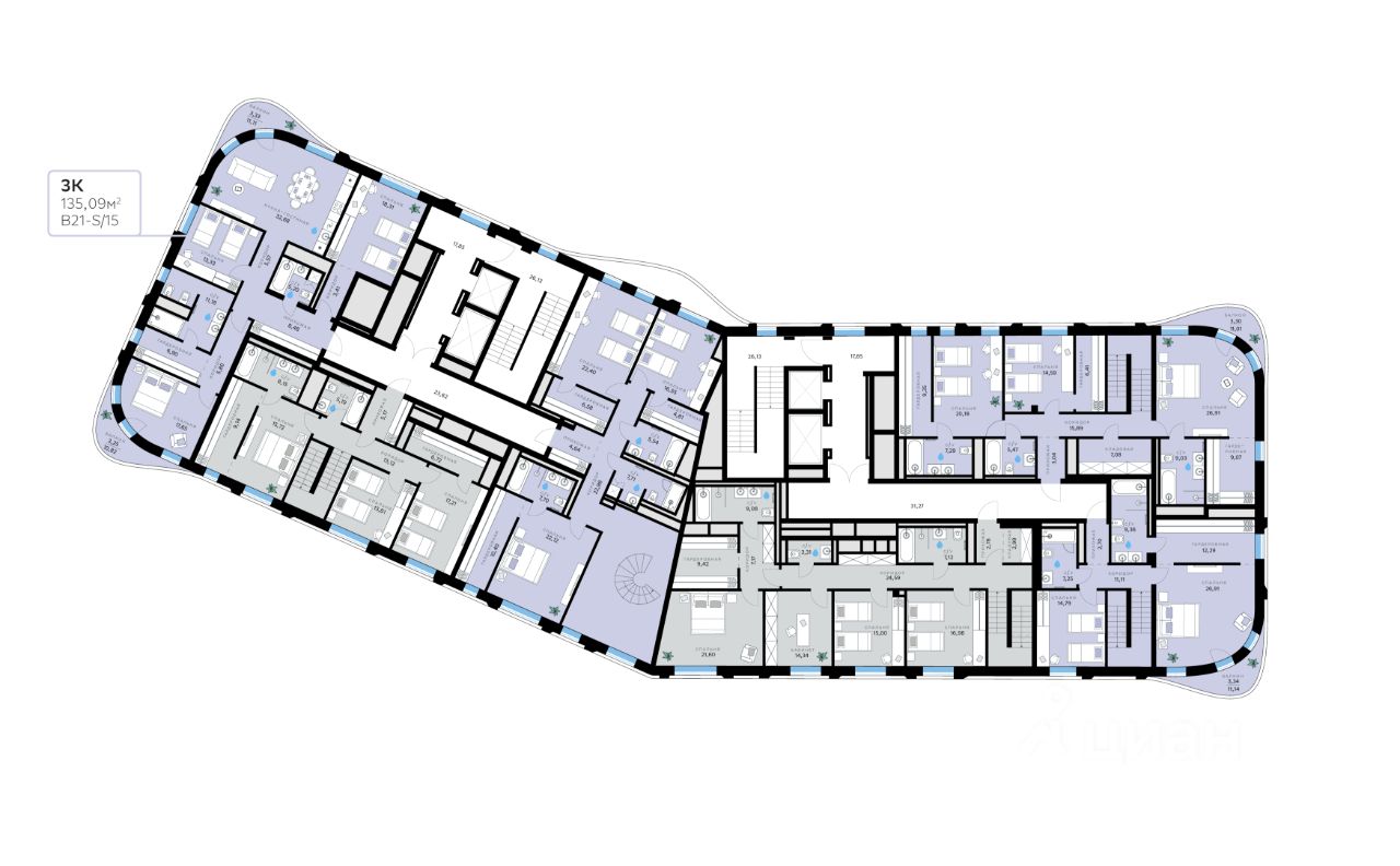 В продаже 3к квартира с чистовой отделкой общей площадью 134,37кв. м. Квартира расположена на 2 этаже 7-этажной секции корпуса Superb в новом Рублёво-Архангельском районе Москвы, который строит Сбер. Дом относится находится на первой береговой линии Москвы-реки.