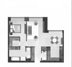 В квартире из отделки сделаны только стены белого цвета . Просторная кухня-гостиная, уединённая спальня и два санузла .