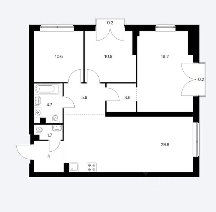 Общая площадь по ЕГРН 89,2 кв.м, комнаты изолированные, предусмотрено место под гардеробную комнату, 2 с/узла, просторная кухня-гостиная площадью почти 30 кв.м