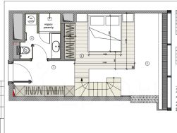 Главное преимущество: для объекта уже разработан готовый дизайн-проект с обустройством мезонина (второго этажа) под спальную зону или кабинет. Вы получаете четкий и продуманный план, который оптимизирует пространство и избавляет вас от лишних затрат и ошибок на этапе ремонта.