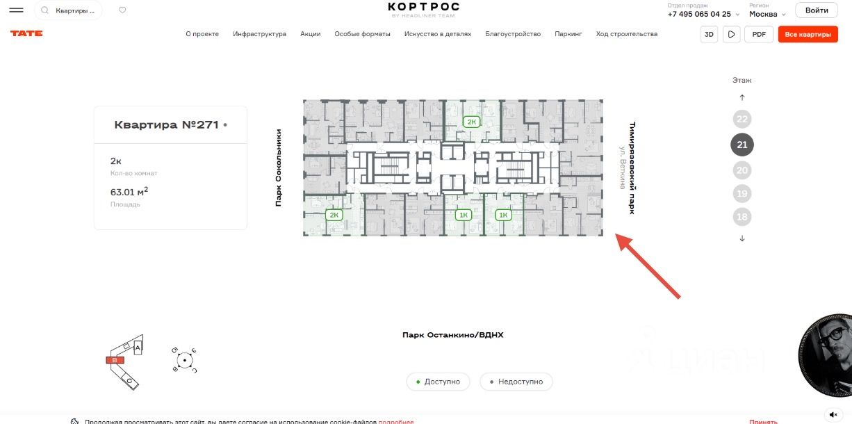ЖК премиум класса Tate. Корпус B. 21 этаж. Евро-3.