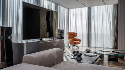 Функциональная планировка включает кухню-гостиную с обеденной зоной, мастер-спальню с собственной ванной комнатой и гардеробной, вторую спальню со своим санузлом и гардеробной, гостевой санузел, гардеробную и холл. Благодаря панорамному остеклению пространство наполнено естественным светом, открываются виды на город и башни "Москва-Сити". В стоимость входит три машиноместа в подземном паркинге.