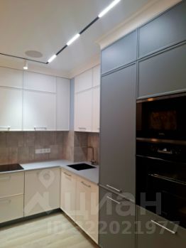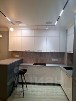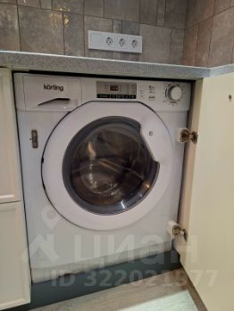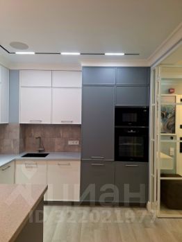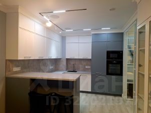 Встроенный кухонный гарнитур с техникой: варочная панель, духовой шкаф, микроволновая печь, вытяжка, холодильник, стиральная машина, посудомоечная машина.