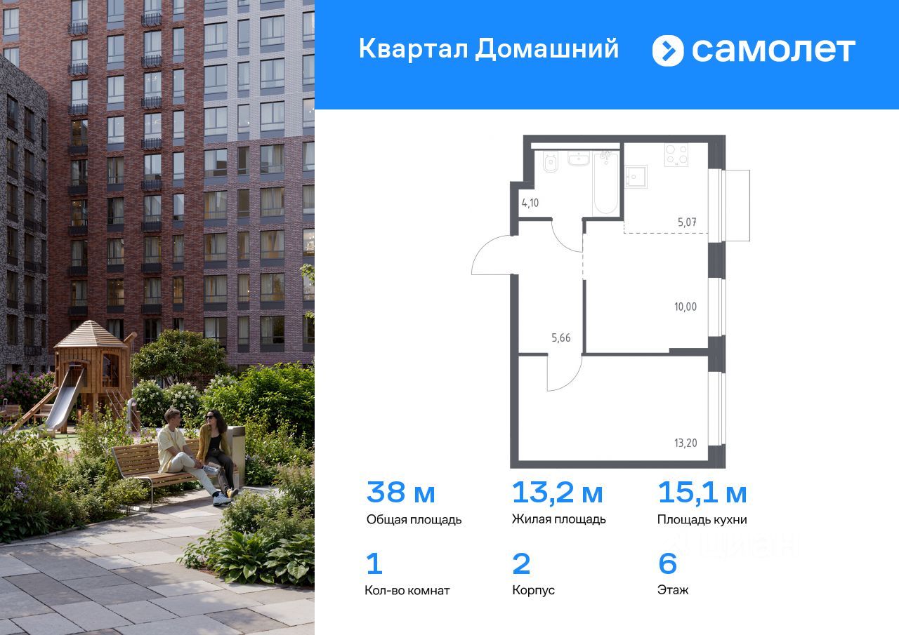Предлагается 1-комнатная квартира комфорт-класса 38,03 кв.м в корпусе 2 на 6 этаже, в ЖК "Квартал Домашний"