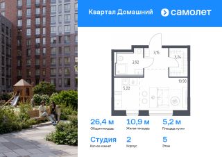 Предлагается квартира студия комфорт-класса 26,43 кв.м в корпусе 2 на 5 этаже, в ЖК "Квартал Домашний"