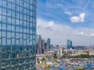 Квартира с отделкой WhiteBox находится на 21 этаже 57-этажного здания и открывает захватывающий вид на Москву:
