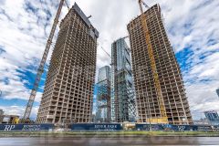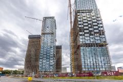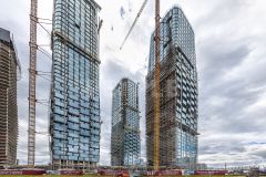 Архитектурное бюро ADM создало уникальные фасады, которые придают башням эффект парения. Комплекс состоит из пяти небоскребов с закрытой территорией home park и открытой торговой галереей.