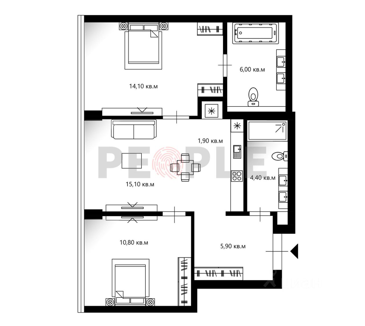 • 2 спальни;