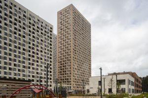 Дом расположен ближе к речке и имеет удобный выезд на ул. Муравская, в уже имеющейся инфраструктуре микрорайона, в котором есть все: магазины, банки, аптеки, пункты доставки, кафе, что очень удобно, т.к. не требуется ехать куда-то, а можно просто прогуляться по красивым благоустроенным дворам и найти все внутри микрорайона. В проекте 2 детских сада, школа и подземные паркинг, рядом Митинский лесопарк и речка.