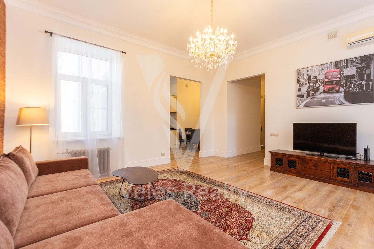 ПЛАНИРОВКА: Гостиная (28м2), 2 спальни (25-18)м2, одна из них с большой гардеробной (6м2), кухня 16м2, 2 совмещенных санузла, один из них с ванной, другой с душевой кабиной. Квартира полностью меблирована и укомплектована необходимой бытовой техникой от ведущих мировых производителей. Кухня итальянская, сделанная по индивидуальному заказу с гранитной столешницей, мраморные подоконники, полы - дубовая доска-массив, двери - дуб-массив Н-2,80. 3 кондиционера, бойлер, встроенные шкафы. Радиаторы немецкие в ретро стиле, чугунные. Потолки 3,60м. Интернет, кабельное телевидение. Лифт. Закрытый двор. Охраняемая платная парковка (подземная/наземная) по соседству.