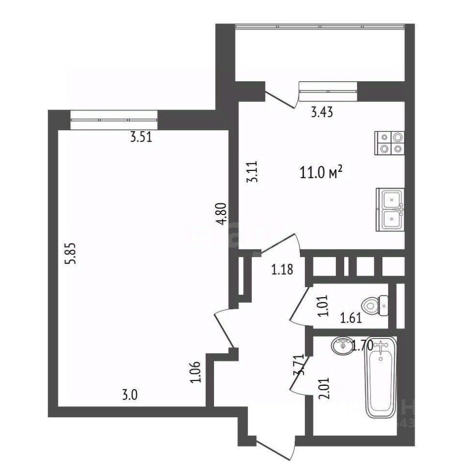 Современная 1-комнатная квартира в новом доме с отличной планировкой.