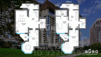* 2 уровень: спальня, два санузла, кабинет и лоджия (можно сделать 3 спальни)