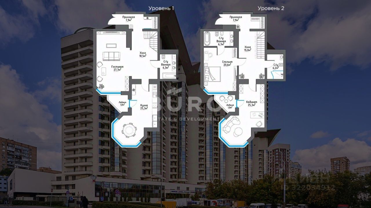 Продается большая двухуровневая квартира 170,7 кв.м., расположенная на 15-16 этажах с двумя лоджиями и открытым панорамным видом в ЖК премиум класса "Вавилово".