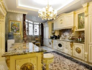 Квартира - сочетание уюта и роскоши. Окна выходят во двор и на улицу, что увеличивает освещение и естественную вентиляцию всех помещений, а кухня оборудована современной импортной бытовой техникой. В ванной комнате, полностью готовой для комфортного использования, можно насладиться высоким уровнем комфорта. Холл украшен великолепной мозаикой "Тиффани", а все межкомнатные двери и шкафы позолочены. Кухонный гарнитур и элементы ванной отделаны сусальным золотом.