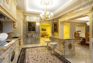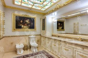 Для отделки использованы сантехника и плитка Versace. Итальянские обои Jacquards Big и картины создают неповторимую атмосферу комфорта. Квартира оснащена общей системой вентиляции и кондиционирования с климат-контролем. Полы из дорогого природного мрамора с подогревом.