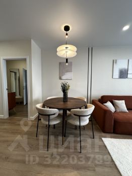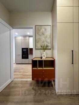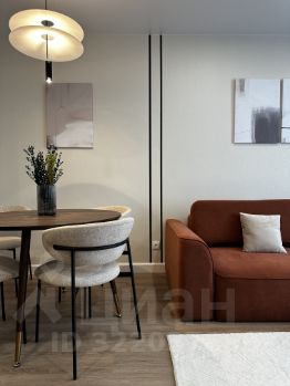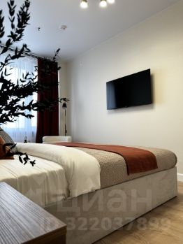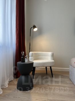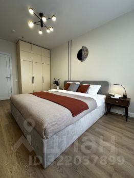 Интерьер выполнен в приятных светлых тонах, апартаменты укомплектованы мебелью. в спальне: двуспальная кровать, ширина матраса 180 см, прикроватные тумбы, шкаф для хранения, в гостиной : диван, обеденный стол, 4 стула, тумба, телевизор, в кухонной зоне: встроенная мебель ,бытовая техника ( посудомоечная машина, варочная панель, духовой шкаф, свч печь, холодильник), в совмещенном санузле установлена стиральная машина, отдельная гардеробная комната, оборудованная системой хранения .