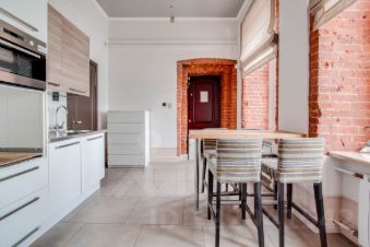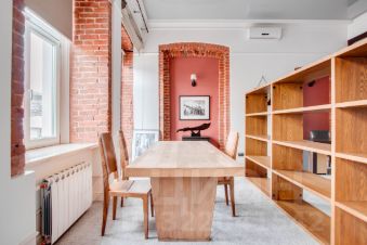 Основные характеристики: дизайнерская отделка в стиле лофт, высота потолков 4 метра, остекление по периметру, большие окна, дающие максимум естественного света, широкие мраморные подоконники, дубовый пол.