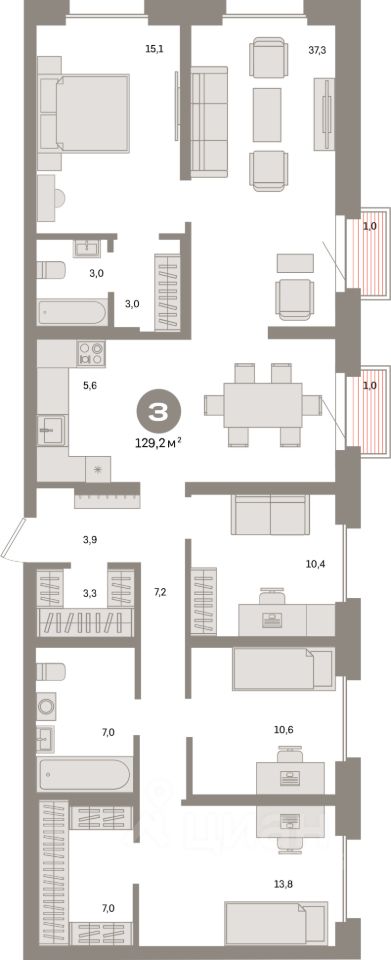 Архитекторы Брусники спроектировали несколько десятков планировочных решений. Квартиры с террасами на первых этажах, стилобате и крыше, двухуровневые пентхаусы, квартиры с мастер-спальнями, гардеробными, окнами в пол и французскими балконами.