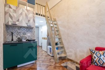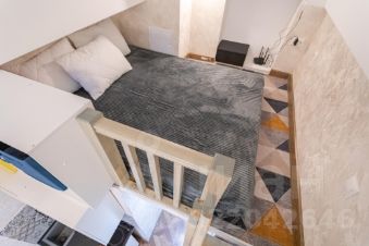 Общая площадь студии - 17,5 м2. Высокие потолки 3,5 м и большие окна.
