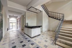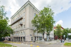 Просторные входные группы с высокими потолками до 5,25 м, оформленные в стилистике советской киноиндустрии, подчёркивают статусность бизнес-пространства. Лаконичный стиль, отделка из натуральных материалов и детальная продуманность проекта позволяют чувствовать себя комфортно и расслабленно. Для удобства в лобби предусмотрены мойки для животных и обуви. В распоряжении собственников консьерж-сервис 24/7.